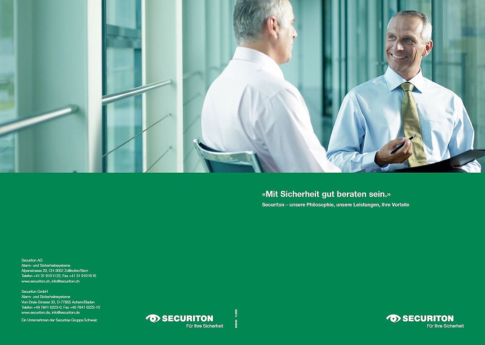 Im Zentrum der neuen Image–Kampagne steht der Kunde und das gute Gefühl, das er dank optimaler Beratung und persönlicher Betreuung durch Securiton geniesst. In der eher nüchternen Welt der Sicherheitstechnik schafft das neue Konzept mehr Raum für Emotionen. Unsere Kunden sollen sich in der neuen Bildwelt wieder erkennen und den Namen Securiton mit Attributen wie «frisch», «smart», «offen», «visionär» verbinden. Diese Eigenschaften sollen zukünftig in stärkerem Zusammenhang mit unserer Firma stehen. Die bestehenden Werte der Marke Securiton wie «Zuverlässigkeit», «Dauerhaftigkeit» und «Tradition» spielen im neuen Kommunikationsauftritt jedoch weiterhin eine zentrale Rolle. Die neue Image-Kampagne fügt sich nahtlos ins Corporate Design der Securitas Gruppe ein.