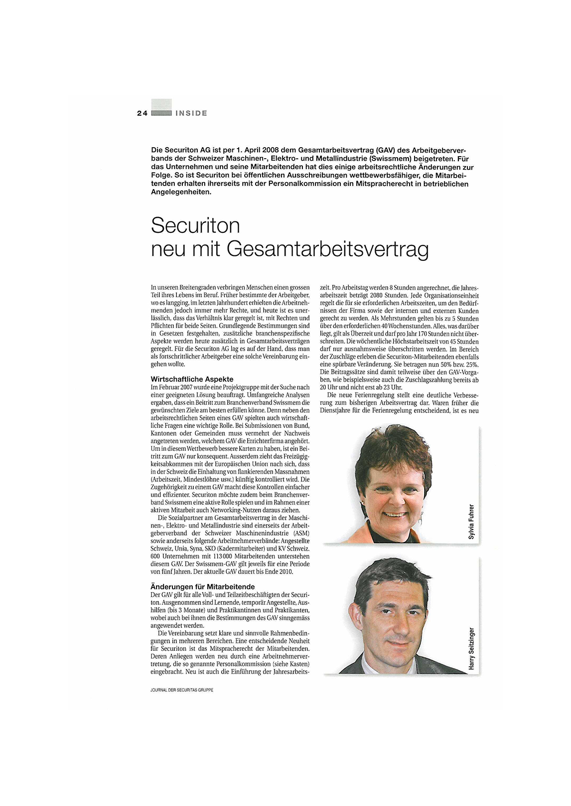 Die Securiton AG ist per 1. April 2008 dem Gesamtarbeitsvertrag (GAV) des Arbeitgeberverbands der Schweizer Maschinen-, Elektro- und Metallindustrie (Swissmem) beigetreten.