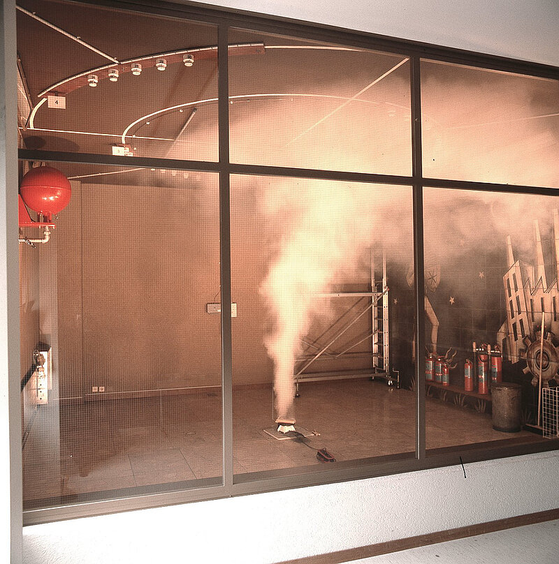 Die Abklärung, wie Brände entstehen und sich ausbreiten, welche Materialien besonders brandgefährdet sind, innerhalb welcher Zeit mit einer erfolgreichen Brandbekämpfung gerechnet werden kann und ähnliche Fragen in diesem Zusammenhang sind in zunehmendem Masse Gegenstand wissenschaftlicher Untersuchungen. Um die Eignung verschiedener Brandmelder für unterschiedliche Brandarten erproben und demonstrieren zu können, wurde in unserem Neubau ein Brandversuchsraum eingerichtet. Durch eine sinnvolle Bauweise und durch die Installation geeigneter Löschmittel ist es uns gestattet, in diesem Raum mit Bränden bis zu einer gewissen Grösse gefahrlos zu experimentieren.