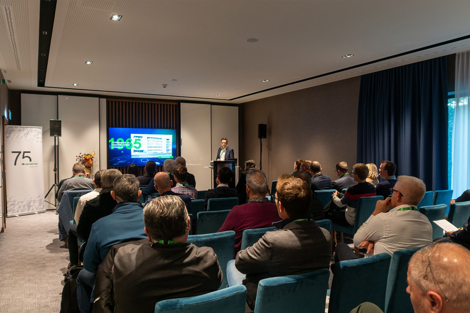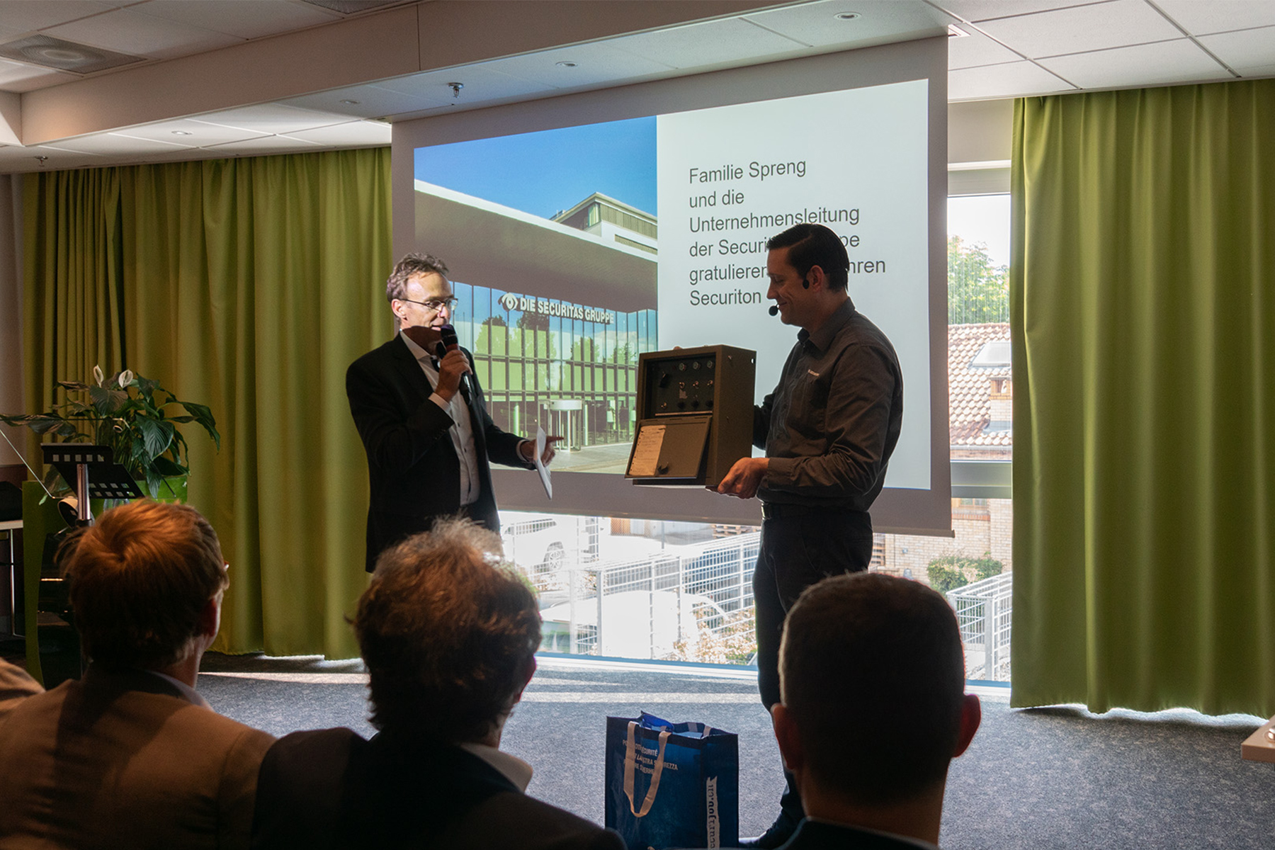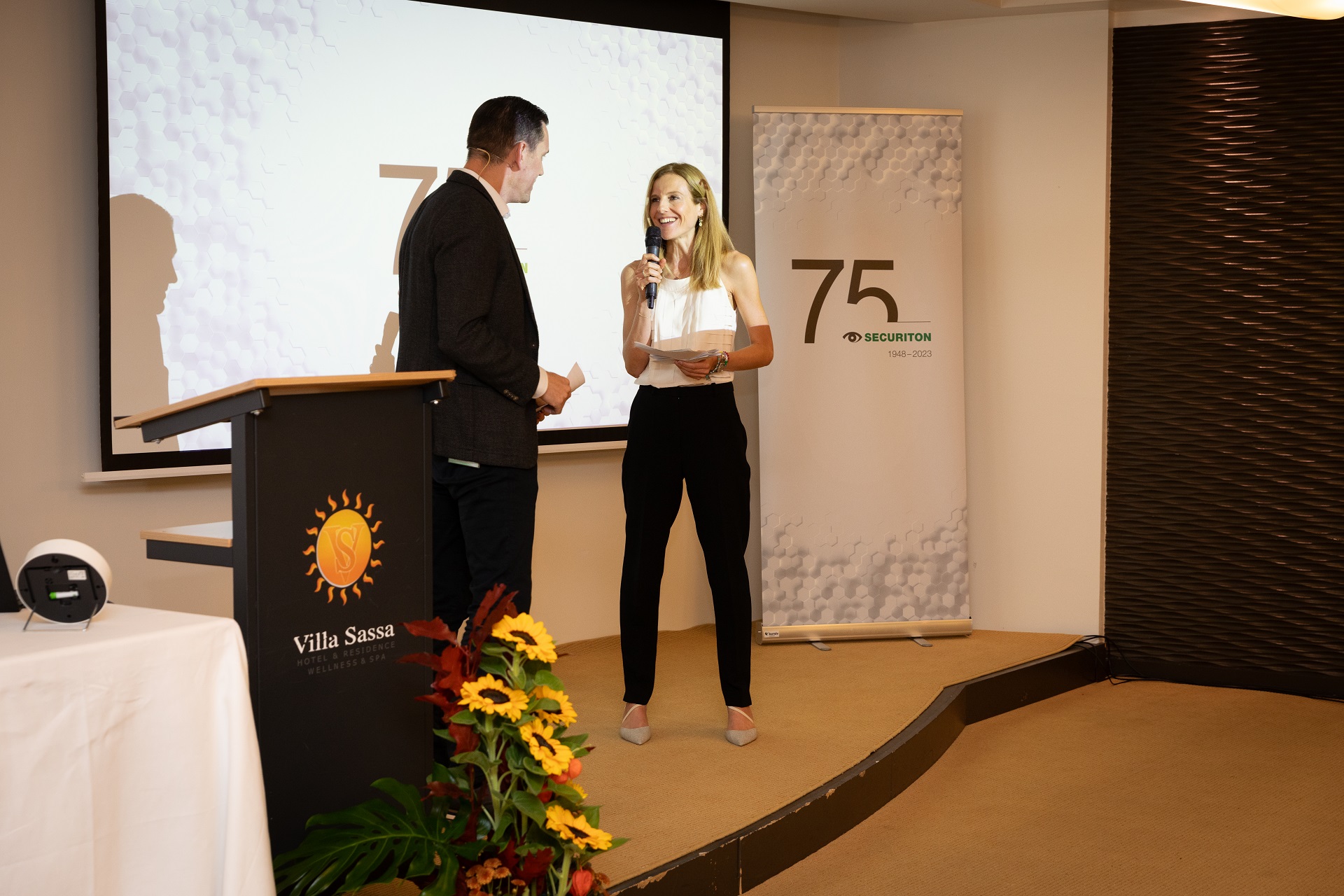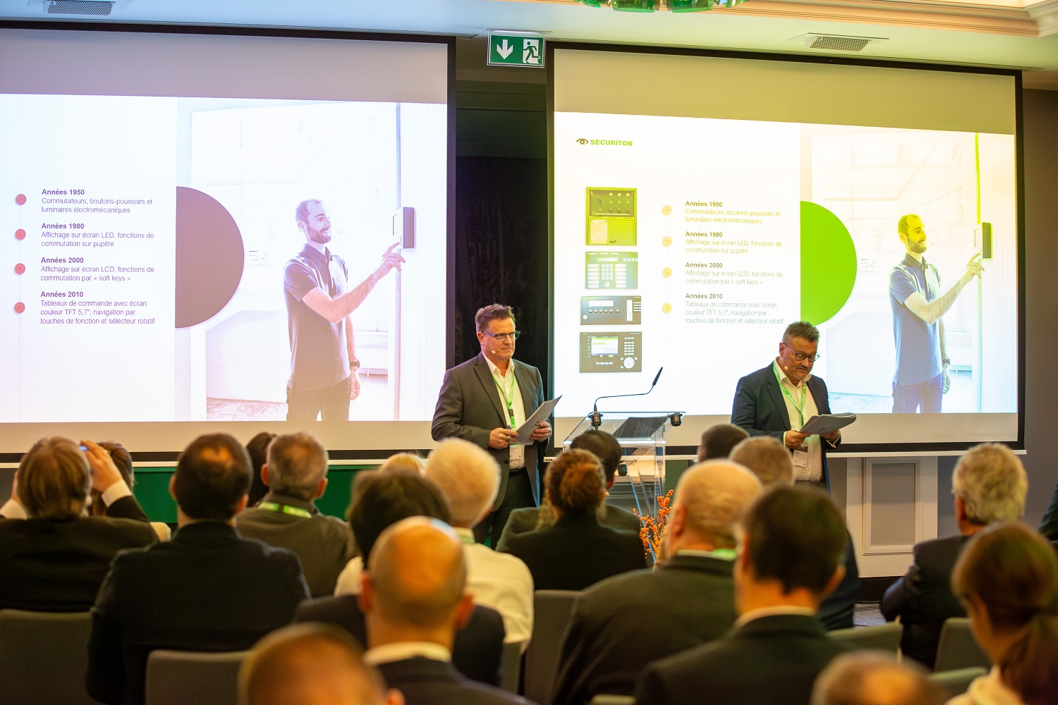 CEO Martin Altorfer eröffnete die Veranstaltung mit einem Rückblick auf die 75-jährige Unternehmensgeschichte von Securiton und informierte über aktuelle Themen und Trends. Michel Bettera, Gruppenleiter Projektmanagement nahm die Teilnehmenden mit auf eine Reise von den Ursprüngen bis zu den Innovationen in der Produkt- und Technologieentwicklung. Nach einer kurzen Pause stellte Elena Roos, Welt- und Europameisterin im Orientierungslauf, ihre persönliche Perspektive zu “Gestern - Heute – Morgen” vor. Begleitet und moderiert wurde der Anlass von Julie Arlin, Moderatorin beim Schweizer Fernsehen RSI.