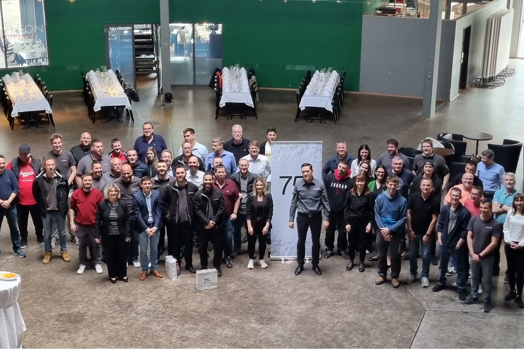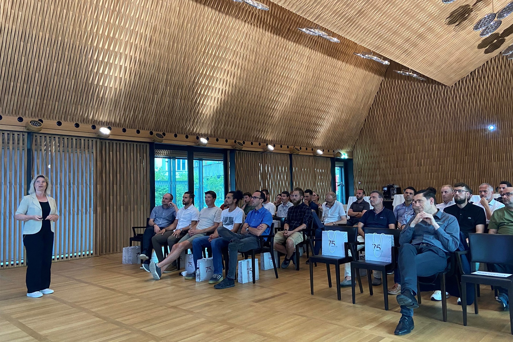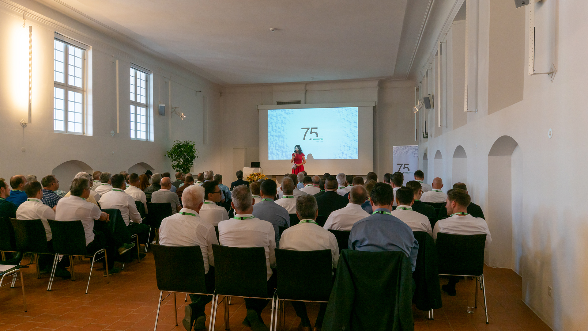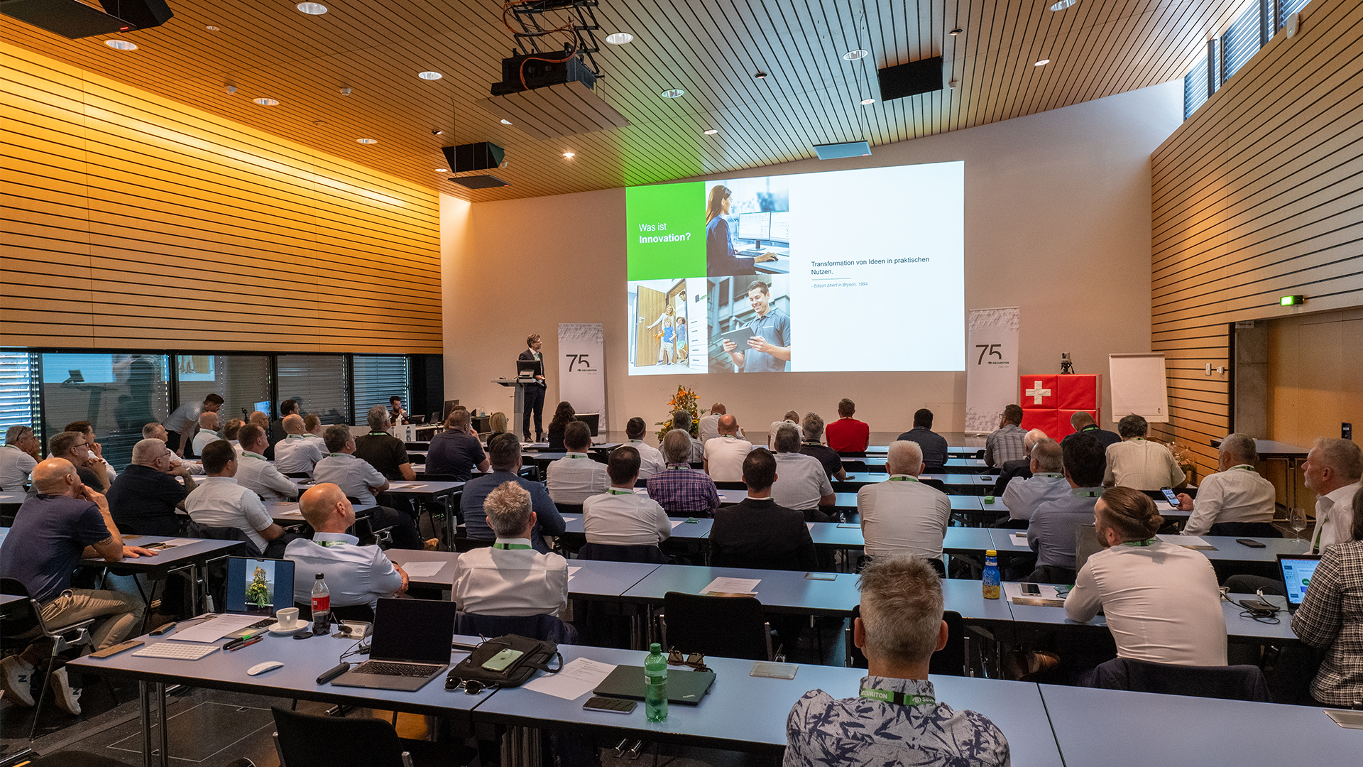 Neben dem persönlichen Austausch gab es noch einen weiteren Anlass zur Freude: das 75-jährige Jubiläum der Securiton. Bei den Jubiläumsfeierlichkeiten stand vor allem der persönliche Austausch im familiären Rahmen im Vordergrund. Neben den Mitarbeitenden durften wir an zwei Terminen auch Gäste aus der Eigentümerfamilie sowie Mitglieder der Unternehmensleitung, Geschäftsleitungen von Gruppengesellschaften und die Kolleginnen und Kollegen der IG TUS begrüssen.