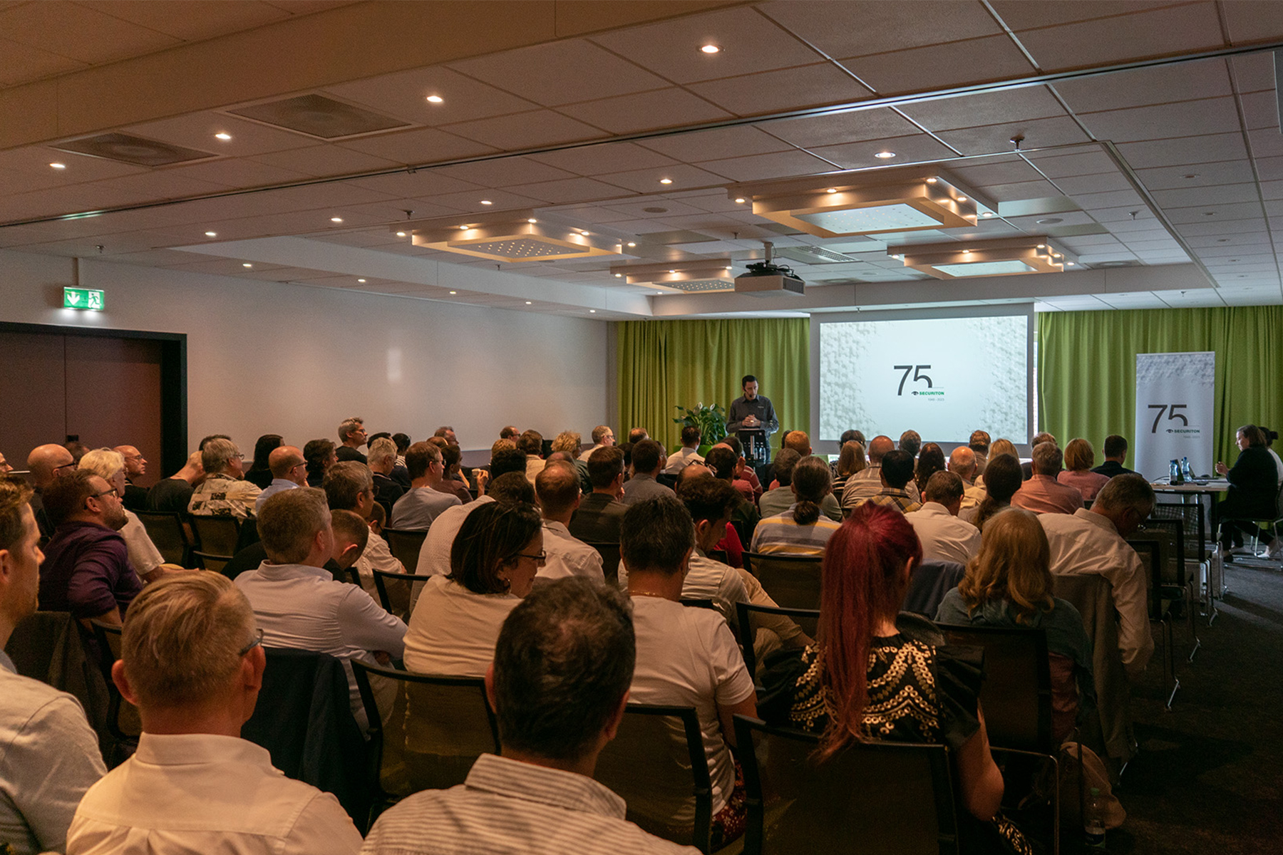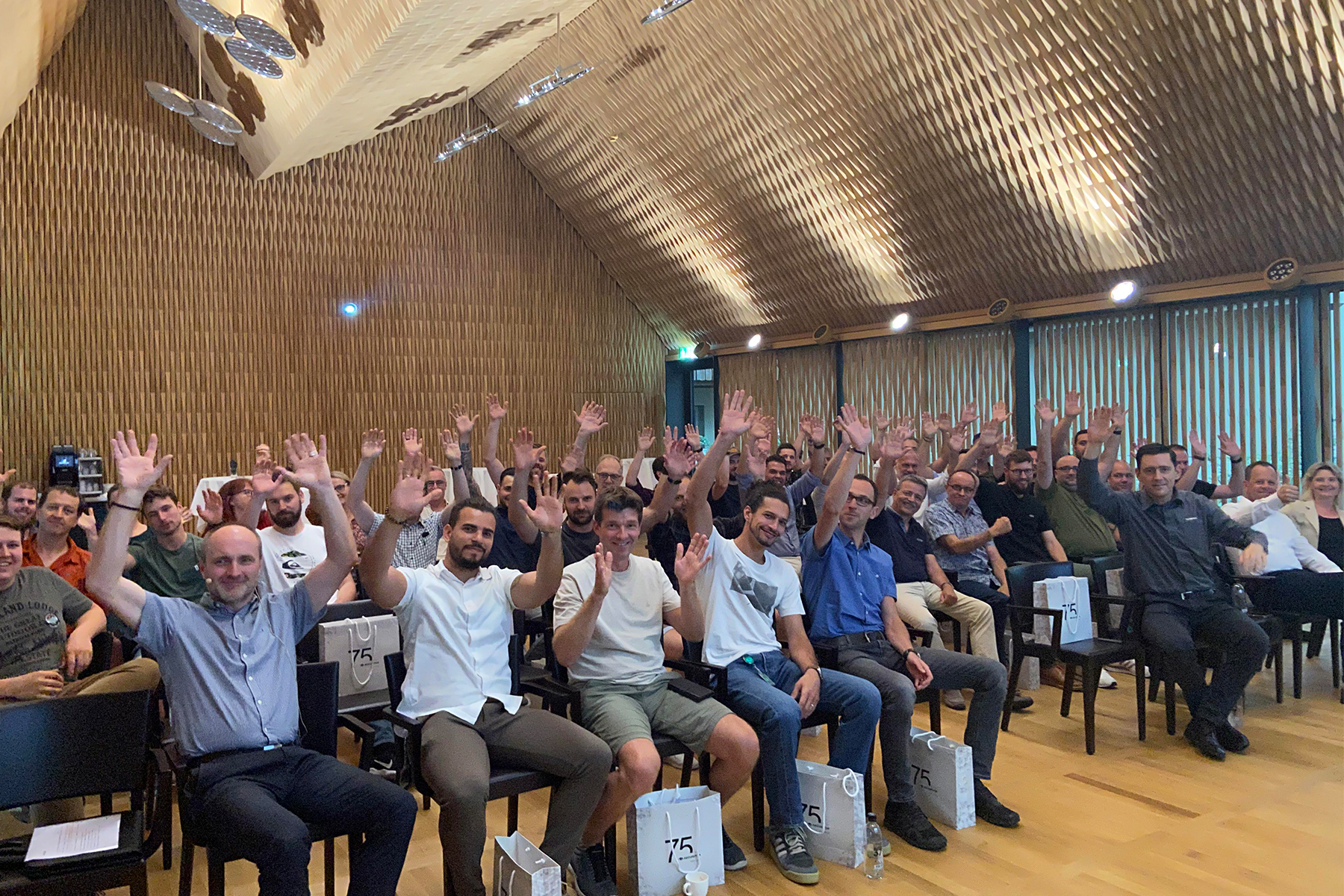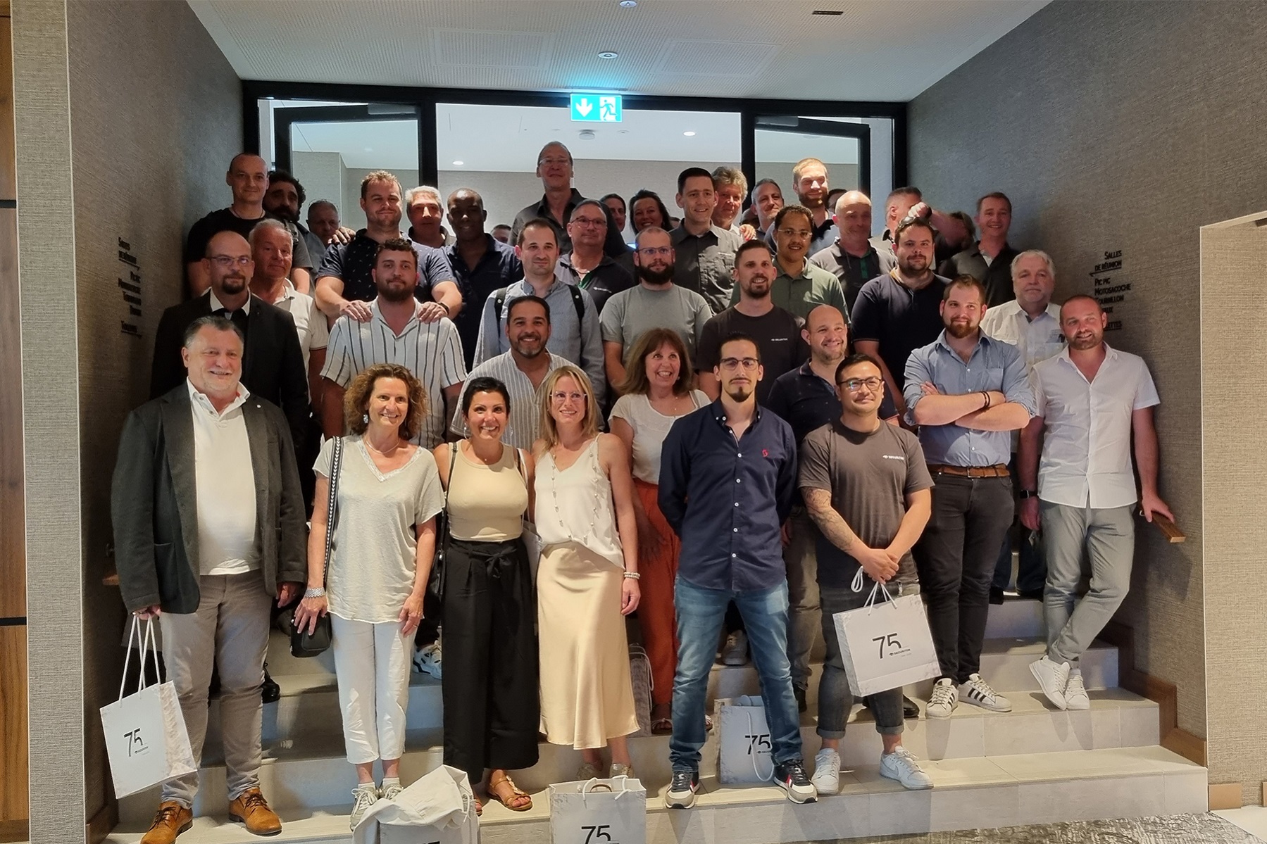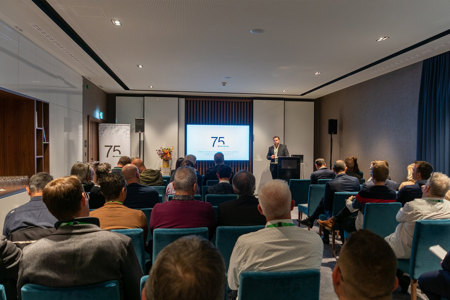 Neben dem persönlichen Austausch gab es noch einen weiteren Anlass zur Freude: das 75-jährige Jubiläum der Securiton. Bei den Jubiläumsfeierlichkeiten stand vor allem der persönliche Austausch im familiären Rahmen im Vordergrund. Neben den Mitarbeitenden durften wir an zwei Terminen auch Gäste aus der Eigentümerfamilie sowie Mitglieder der Unternehmensleitung, Geschäftsleitungen von Gruppengesellschaften und die Kolleginnen und Kollegen der IG TUS begrüssen.